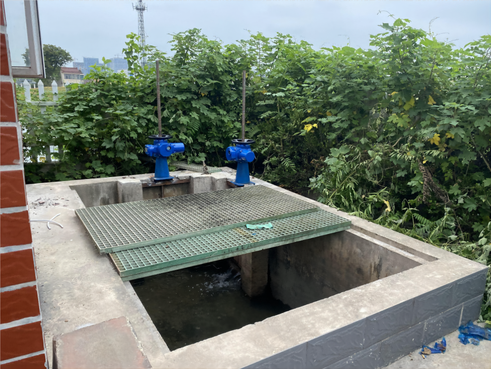水坑处安装雷达液位计,更稳固,数据更准确,水中淤泥,水藻太多,把雷达液位计放水坑中间,减少树叶,杂草,水藻的影响。当水位低-----开主闸门;当水位高-----关闭主闸门;当水位过高-----关闭主闸门---关闭两个分渠道闸门----开泵强排----打开闸板。