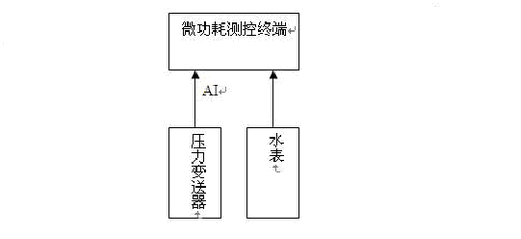 将防水外罩安装在监测井井壁上,微功耗测控终端放置在防水罩内。压力变送器信号线、水表信号线接在微功耗测控终端自带的防水接线盒上。