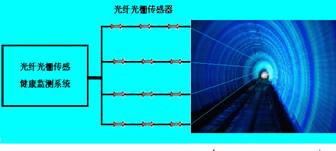 在隧道内应用的光纤光栅传感器包括:温度传感器、应变传感器、位移传感器、压力传感器、倾斜传感器、土压计、渗压计、猫杆测力计等。光纤光栅传感健康监测系统包括传感器、数据采集、数据通讯、数据保存、数据处理、开放接口等单元组成。